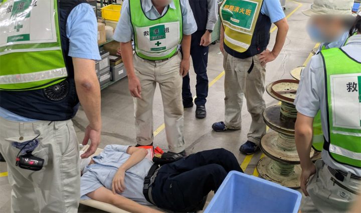 発見者が救護班を呼び担架で避難先である屋外まで運びました。